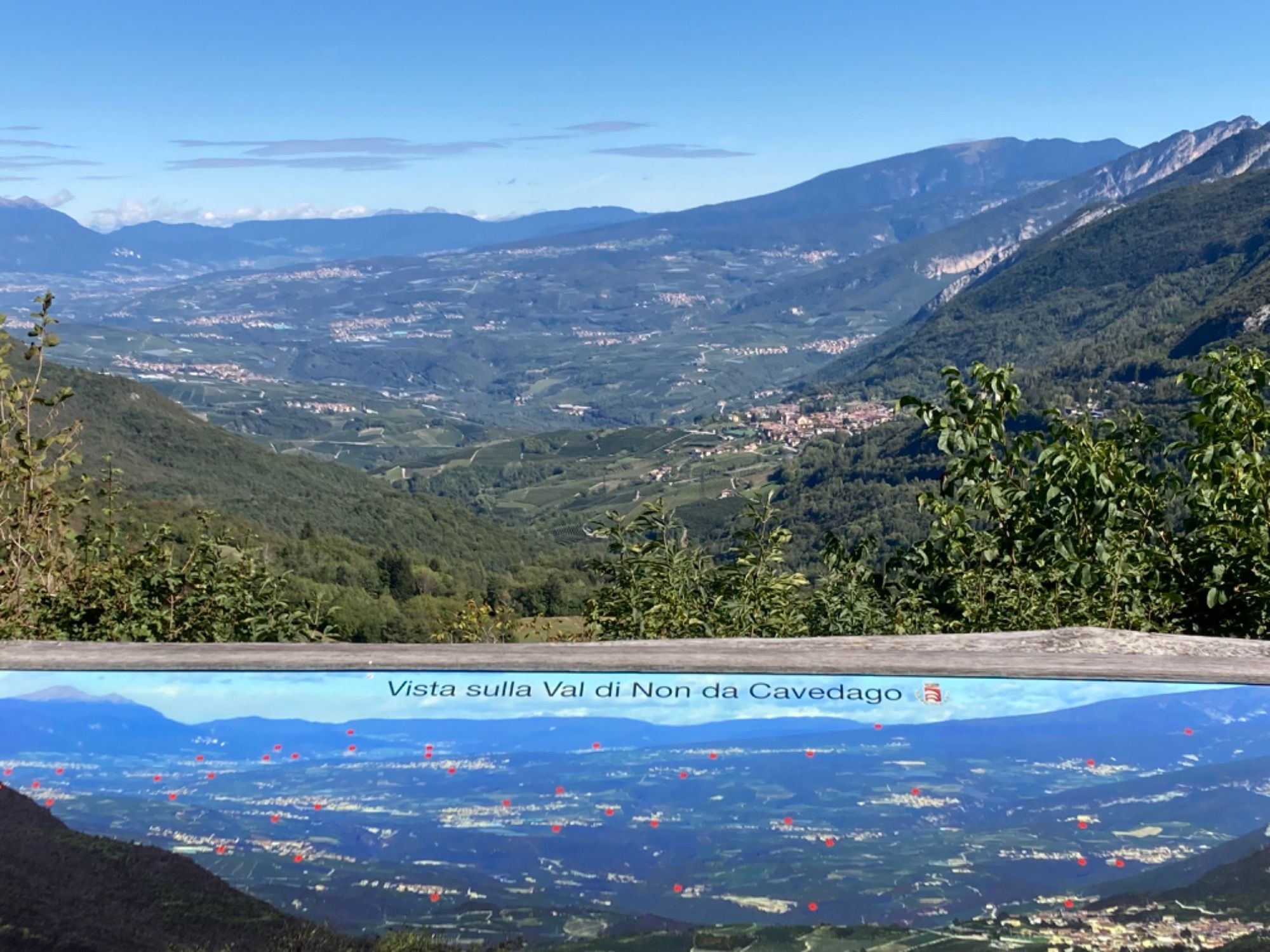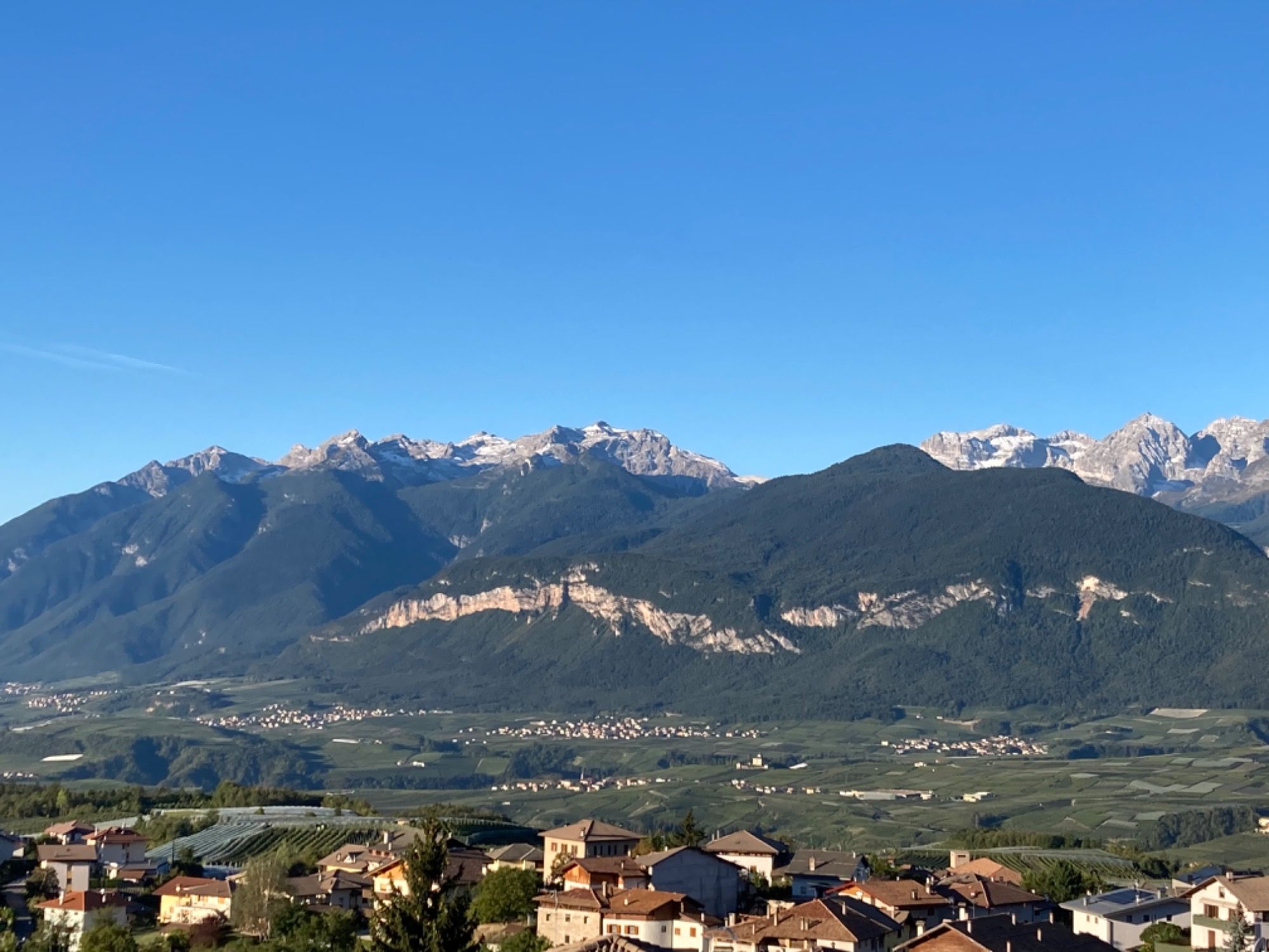 Da war es doch heute früh (ätsch, das schreibt man weiterhin klein) ganz schön, vom Balkon aus die Traumkulisse der Brenta-Dolomiten in bestem Wetter zu sehen (siehe Fotos) und nach einem genauso unterirdischen Frühstück die gastliche Stätte zu verlassen. Ein Shuttle brachte uns nach Spormaggiore, und es war ganz gut, dass dieser Abschnitt geschummelt überwunden wurde. Man hätte wohl auch zu Fuß gehen können, aber es war wahrlich nicht die schönste Strecke.